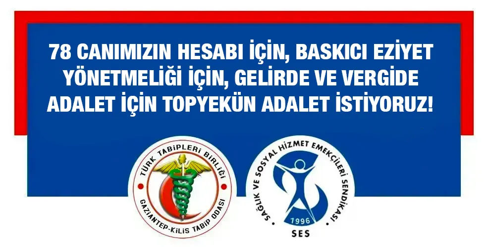 78 CANIMIZIN HESABI İÇİN, BASKICI EZİYET YÖNETMELİĞİ İÇİN, GELİRDE VE VERGİDE ADALET İÇİN TOPYEKÜN ADALET İSTİYORUZ!