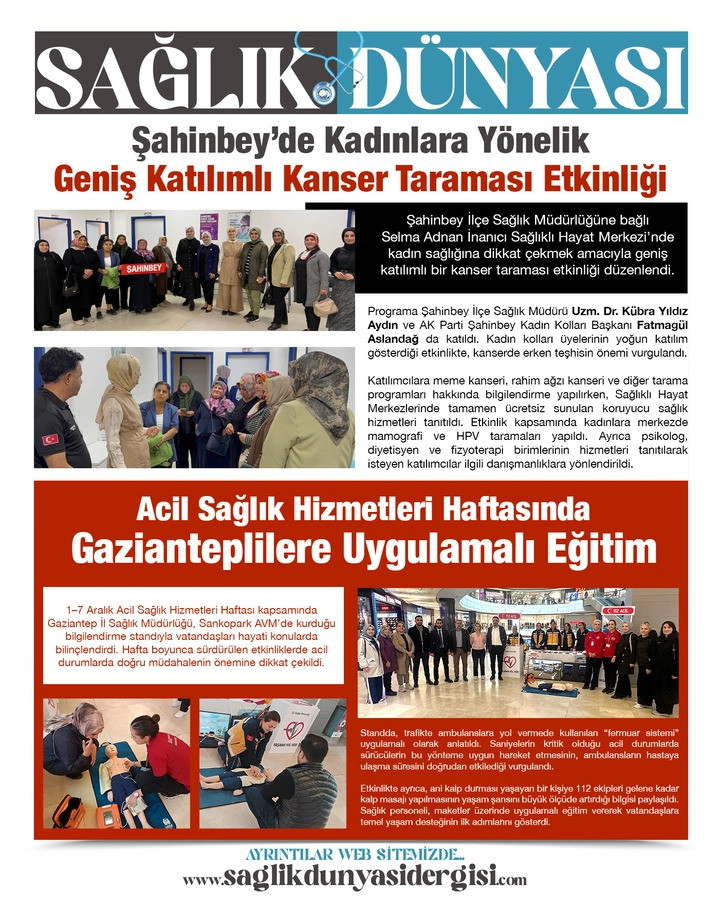 1–7 Aralık Acil Sağlık Hizmetleri Haftası kapsamında Gaziantep İl Sağlık Müdürlüğü, Sankopark AVM’de kurduğu bilgilendirme standıyla vatandaşları hayati konularda bilinçlendirdi. Hafta boyunca sürdürülen etkinliklerde acil durumlarda doğru müdahalenin önemine dikkat çekildi.