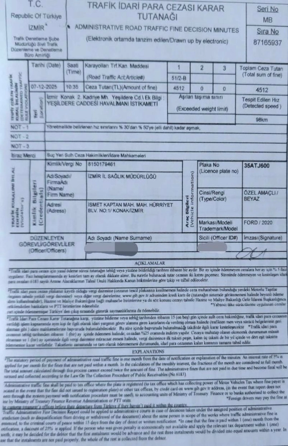 İzmir’de yeşil dere caddesinde 98 km hızla ambulansa ceza yazılması ve yazılan cezanın çalışan sağlık personeline ödettirilmeye çalışılması doğru bir yaklaşım değildir.