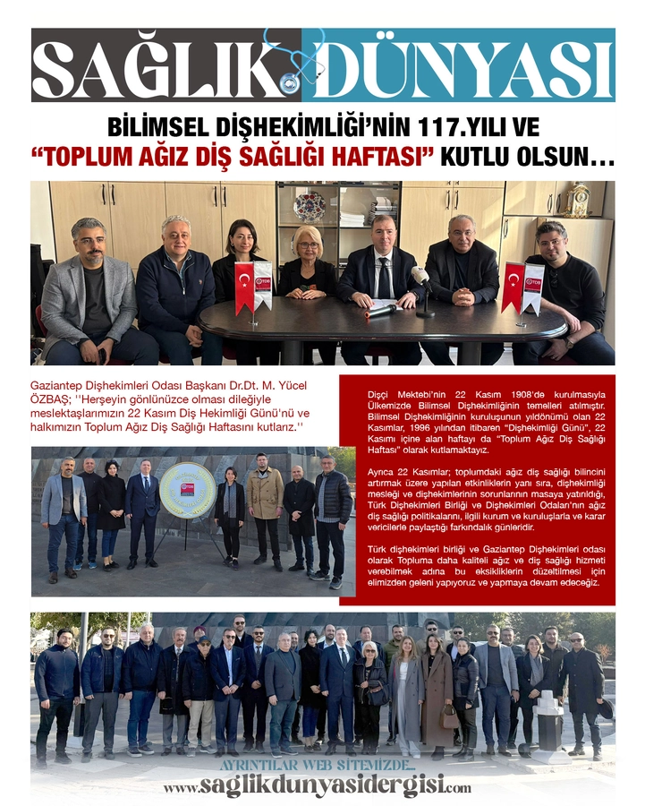 Türk dişhekimleri birliği ve Gaziantep Dişhekimleri odası olarak Topluma daha kaliteli ağız ve diş sağlığı hizmeti verebilmek adına bu eksikliklerin düzeltilmesi için elimizden geleni yapıyoruz ve yapmaya devam edeceğiz.