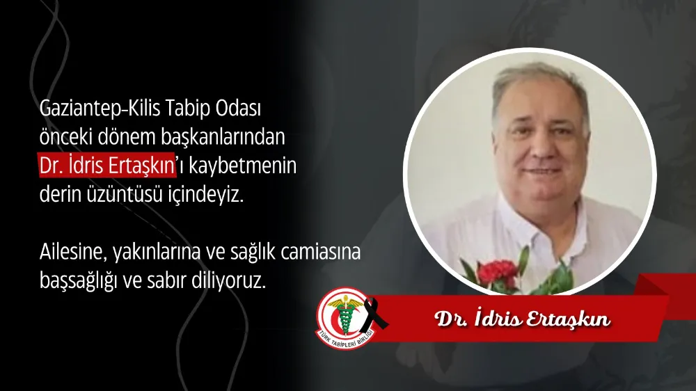 Gaziantep’te uzun yıllar sağlık camiamıza hizmet eden Çocuk Cerrahisi Uzmanı Op. Dr. İdris Ertaşkın’ın vefatını derin bir üzüntüyle öğrenmiş bulunmaktayız.