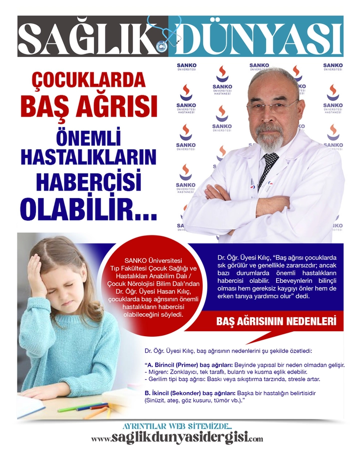 Dr. Öğr. Üyesi Kılıç, “Baş ağrısı çocuklarda sık görülür ve genellikle zararsızdır; ancak bazı durumlarda önemli hastalıkların habercisi olabilir. Ebeveynlerin bilinçli olması hem gereksiz kaygıyı önler hem de erken tanıya yardımcı olur” dedi.