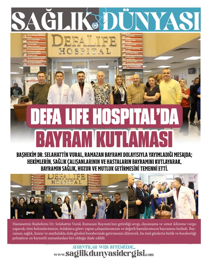 Defa Life Hospital Başhekimi Dr. Selahattin Vural, Ramazan Bayramı’nın getirdiği sevgi, dayanışma ve umut iklimine vurgu yaparak; tüm hekimlerimizin, fedakârca görev yapan çalışanların ve hastaların bayramını kutladı.