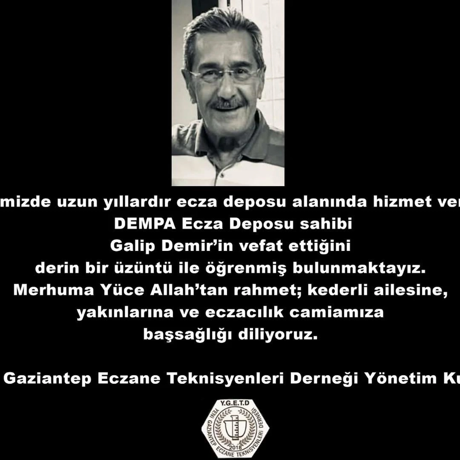 Dempa Ecza Deposu sahibi Galip Demir vefat etmiştir