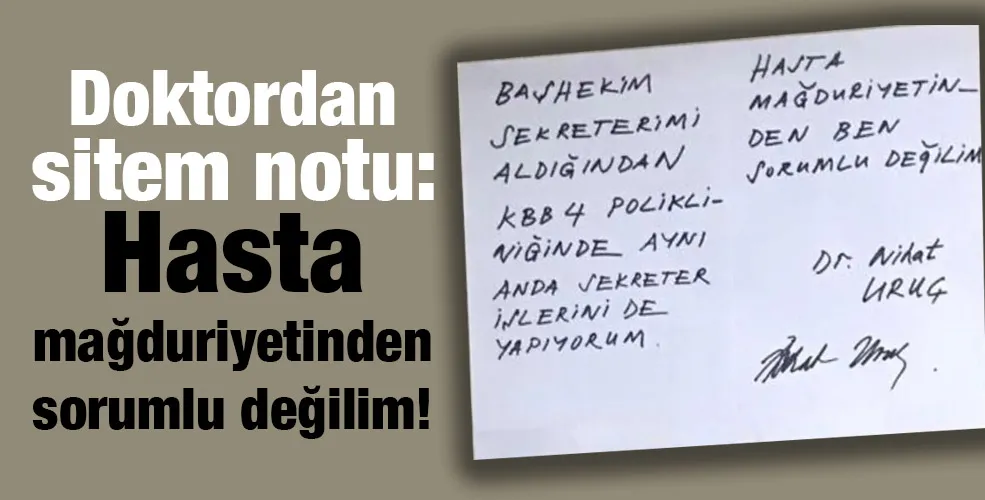 Niğde Ömer Halisdemir Eğitim ve Araştırma Hastanesinde görev yapan KBB doktoru, poliklinik odasına astığı not ile sekreterinin başhekim tarafından kendisinden alındığını onun işlerini de yaptığı için hasta mağduriyetinden sorumlu olmadığını belirten bir yazıyı kapısına astı.