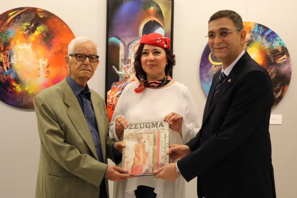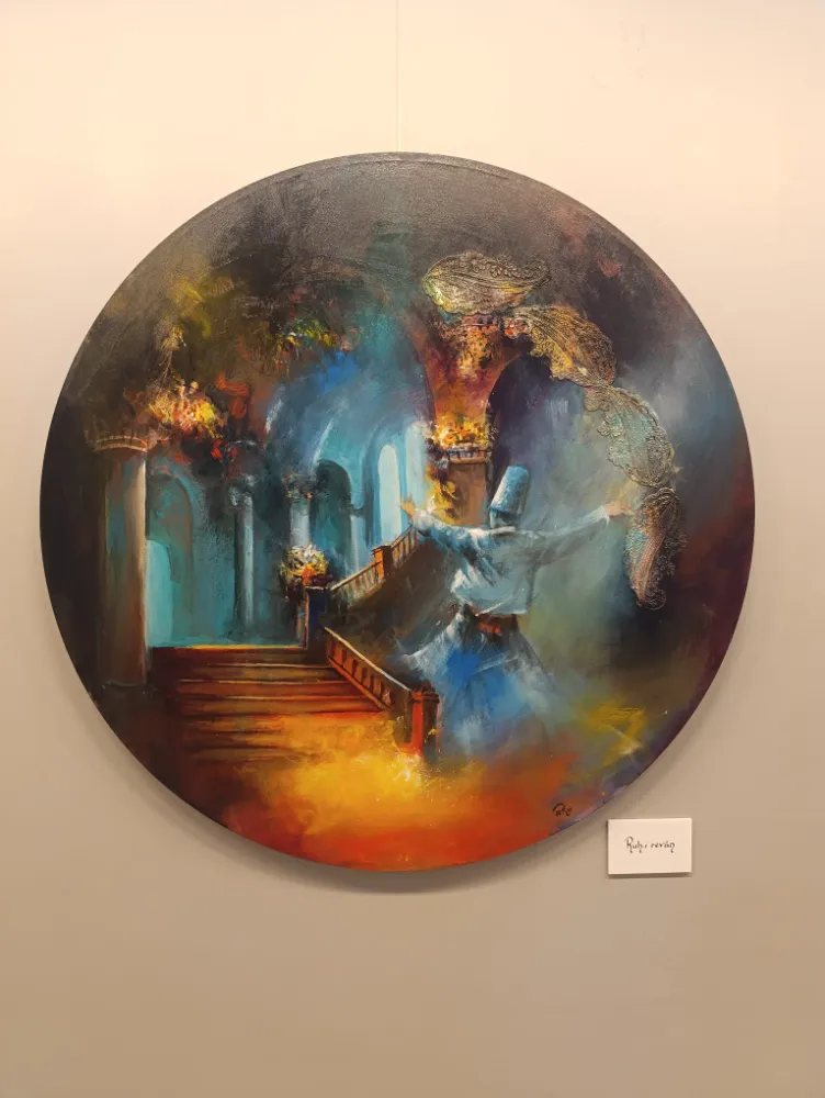 Fatoş Tatar Eker ise sergilediği eserlerinde tasavvufun soyut ve modern sanatla buluştuğu, kendi ruhundan yansıyan renklerin tuvalde birer hikâyeye dönüştüğünü söyledi.