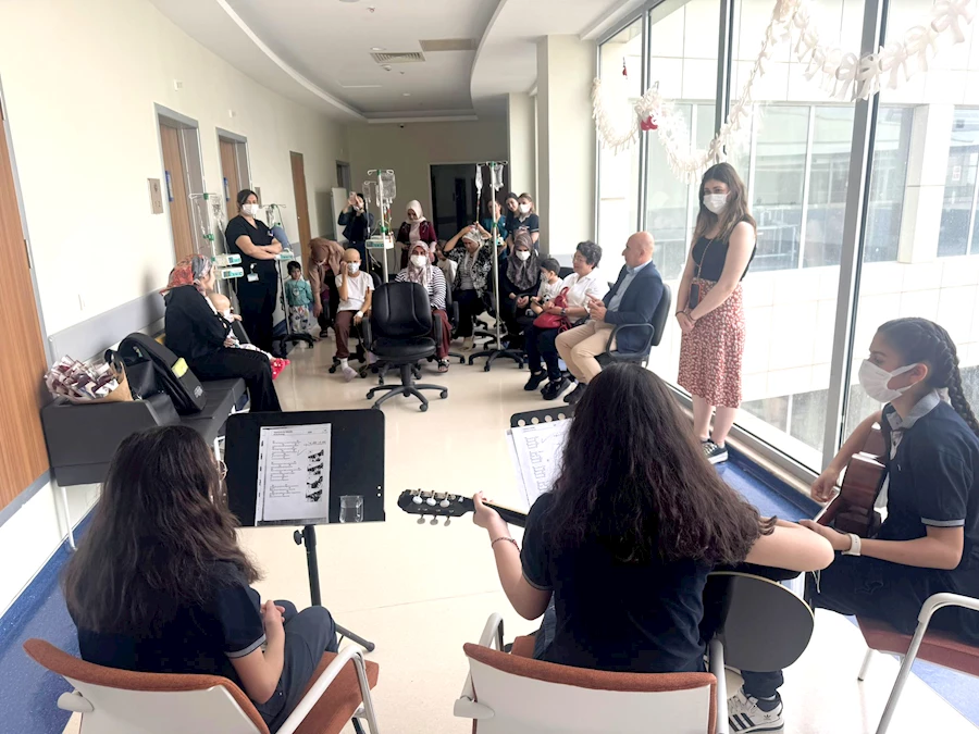 Müzik dinletisinin ardından, tedavi gören çocukların annelerine çiçek takdim edildi.