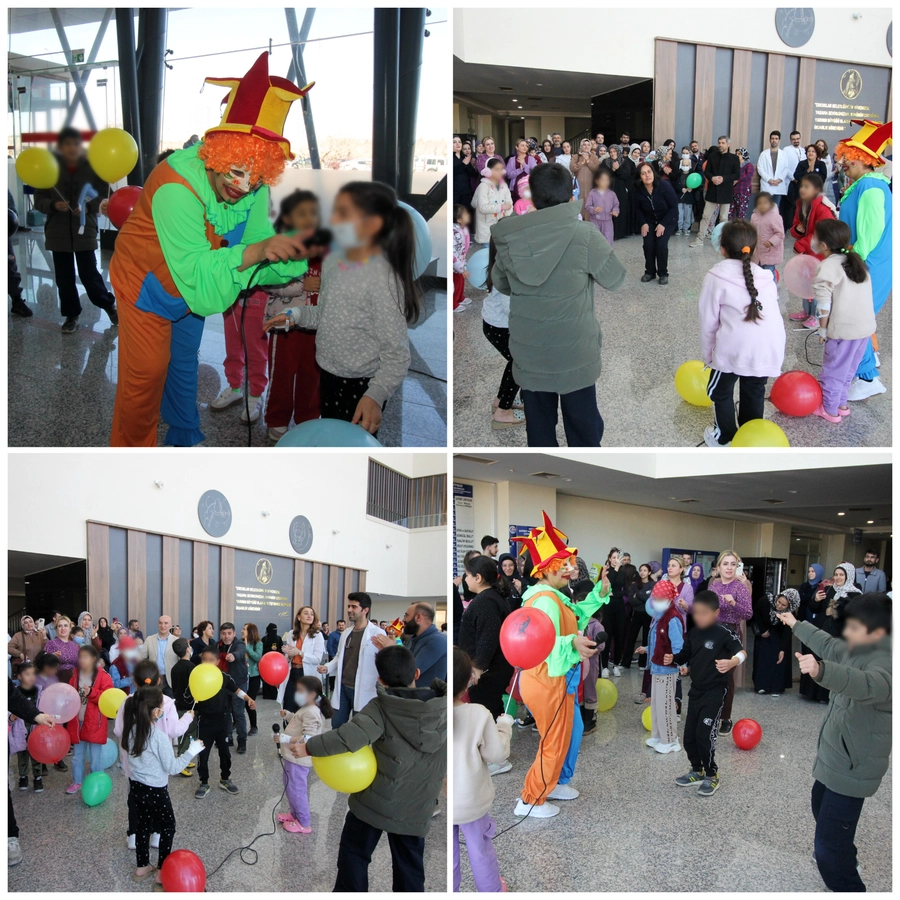 Etkinlikte, hastanede tedavi gören çocuk hastalar palyaço eşliğinde doyasıya eğlendi. Program pasta kesimiyle sona erdi.
