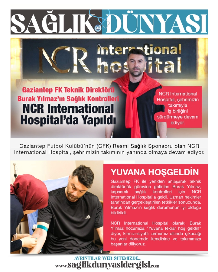 Gaziantep FK ile yeniden anlaşarak teknik direktörlük görevine getirilen Burak Yılmaz, kapsamlı sağlık kontrolleri için NCR International Hospital’a geldi. Uzman hekimler tarafından gerçekleştirilen tetkikler sonucunda, Burak Yılmaz’ın sağlık durumunun iyi olduğu bildirildi. NCR International Hospital olarak; Burak Yılmaz hocamıza "Yuvana tekrar hoş geldin" diyor, kırmızı-siyahlı armamız altında çıkacağı bu yeni dönemde kendisine ve takımımıza başarılar diliyoruz.