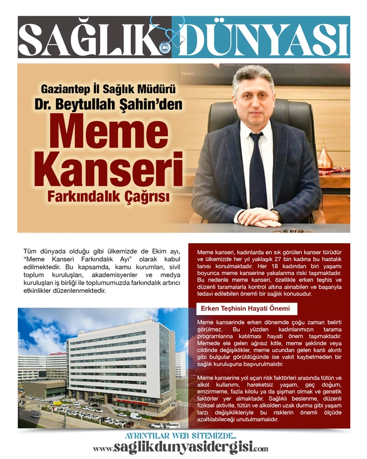 Meme kanserinde erken teşhis hayat kurtarır. Tüm kadınlarımızı düzenli taramalarını yaptırmaya, sağlıklı yaşam alışkanlıklarını benimsemeye ve kendi sağlıklarına sahip çıkmaya davet ediyorum.