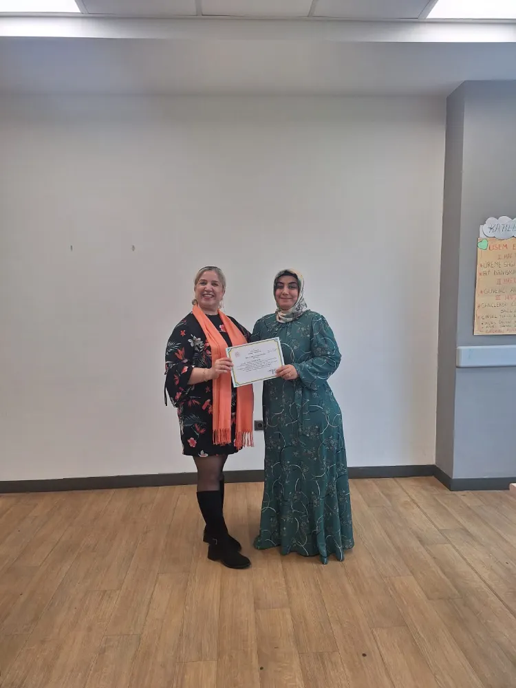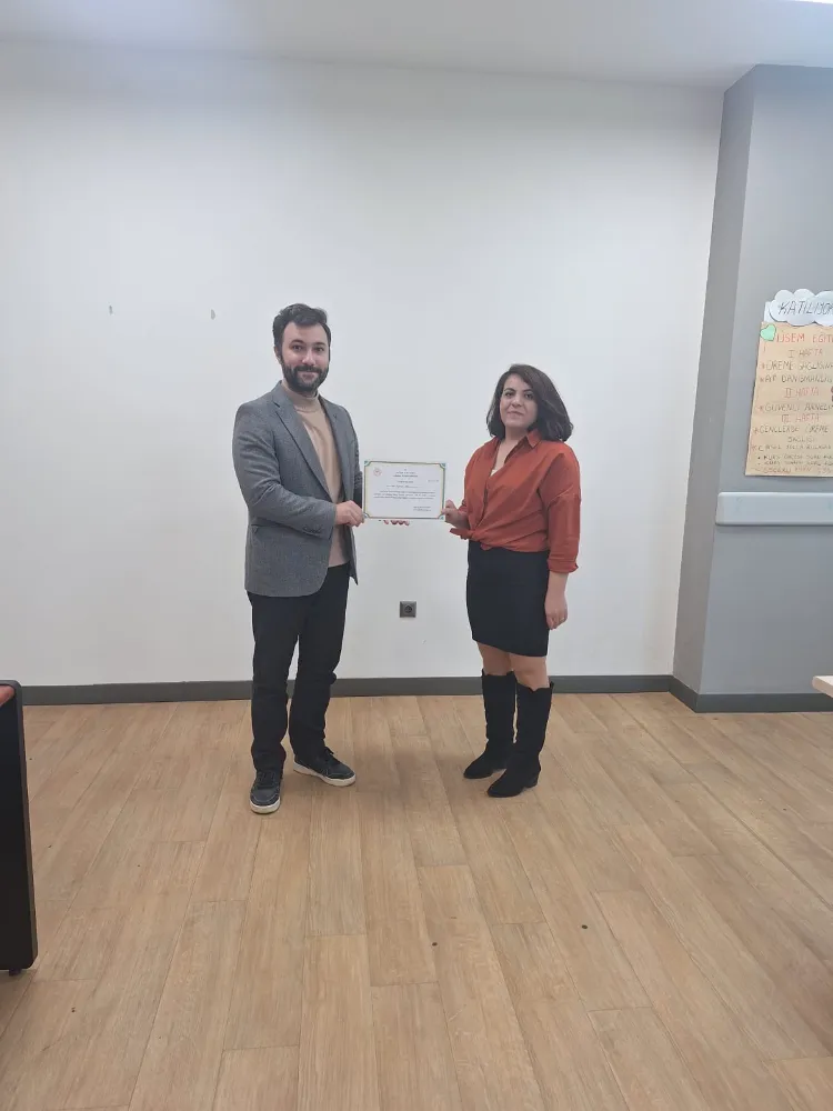 22 Eylül 2025 – 12 Aralık 2025 tarihleri arasında düzenlenen ‘Üreme Sağlığı Eğitimi’ programına katılan 3 tabip, 4 hemşire, 6 ebe ve 1 ATT’ den oluşan toplam 14 katılımcı, üç haftalık kapsamlı eğitimlerini tamamlayarak sertifikalarını almaya hak kazandı. 12 Aralık 2025 tarihinde gerçekleşen sertifika törenine, Halk Sağlığı Hizmetleri Başkan Yardımcısı Dr. Adem SARI katılmıştır.