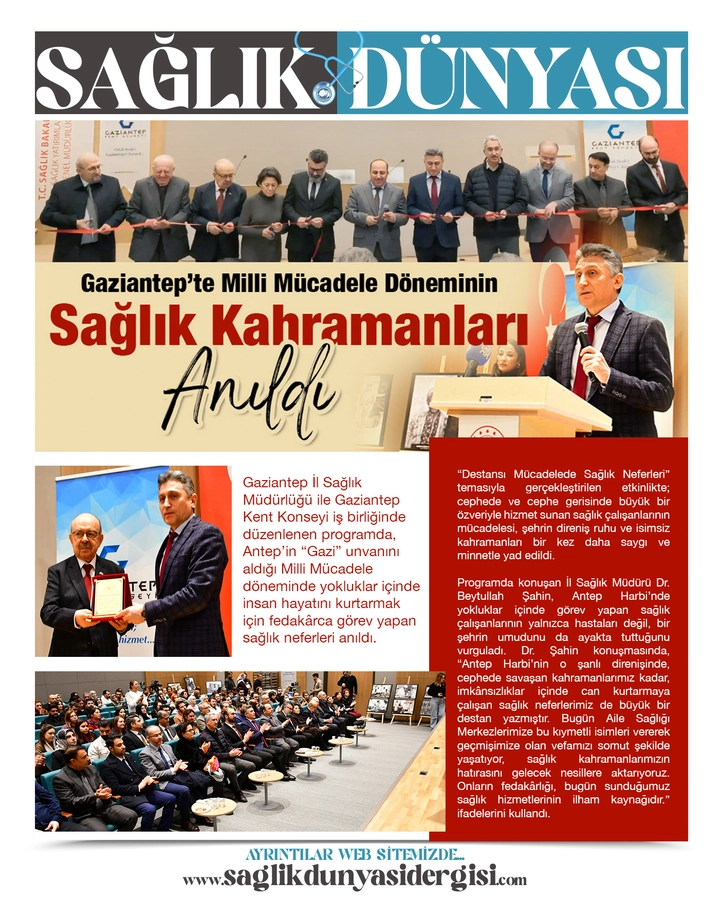 Gaziantep İl Sağlık Müdürlüğü ile Gaziantep Kent Konseyi iş birliğinde düzenlenen programda, Antep’in “Gazi” unvanını aldığı Milli Mücadele döneminde yokluklar içinde insan hayatını kurtarmak için fedakârca görev yapan sağlık neferleri anıldı. “Destansı Mücadelede Sağlık Neferleri” temasıyla gerçekleştirilen etkinlikte; cephede ve cephe gerisinde büyük bir özveriyle hizmet sunan sağlık çalışanlarının mücadelesi, şehrin direniş ruhu ve isimsiz kahramanları bir kez daha saygı ve minnetle yad edildi.