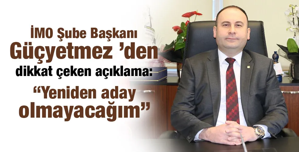İnşaat Mühendisleri Odası (İMO) Gaziantep Şube Başkanı Burkay Güçyetmez, görevde bulunduğu iki dönemlik ve başarılarla dolu 4 yıllık başkanlık süresinin ardından yeniden aday olmayacağını açıkladı.