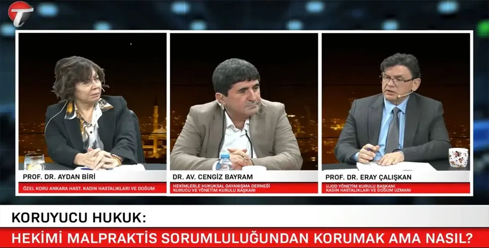 Programa konuşmacı olarak, Ulusal Jinekoloji ve Obstetri Derneği Yönetim Kurulu Başkanı ve Kadın Hastalıkları ve Doğum Uzmanı Prof. Dr. Eray Çalışkan ile Hekimlerle Hukuksal Dayanışma Derneği Kurucu ve Yönetim Kurulu Başkanı Dr. Av. Cengiz Bayram katıldı.