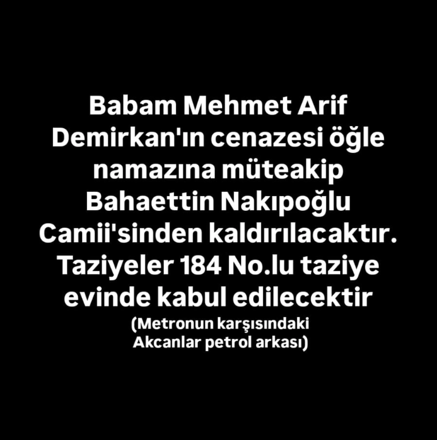 Mikrobiyoloji uzmanı Dr. Arif Demirkan vefat etmiştir, cenazesi bu gün öğle namazından sonra Bahittin Nakıpoğlu camisinden kaldırılacaktır.
