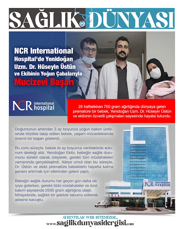 Doğumunun ardından 3 ay boyunca yoğun bakım ünitesinde titizlikle takip edilen bebek, yaşam mücadelesinde önemli bir başarı gösterdi. Bu zorlu süreçte, bebek iki ay boyunca ventilatörde solunum desteği aldı. Yenidoğan Ekibi, bebeğin sağlık durumunu sürekli olarak izleyerek, gerekli tüm müdahaleleri zamanında gerçekleştirdi. Aileye umut olan bu süreçte, Dr. Üstün ve ekibi prematüre bebeklerin hayatta kalma şansını artırmak için ellerinden geleni yaptı. Bebeğin sağlık durumu her geçen gün daha da iyiye giderken, gerekli tıbbi müdahaleler ve özel bakım sayesinde 2500 gram ağırlığına ulaştı. Nihayetinde, sağlıklı bir şekilde taburcu edilerek ailesine kavuştu.