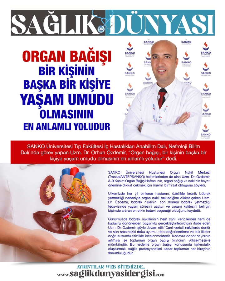 SANKO Üniversitesi Tıp Fakültesi İç Hastalıkları Anabilim Dalı, Nefroloji Bilim Dalı’nda görev yapan Uzm. Dr. Orhan Özdemir, “Organ bağışı, bir kişinin başka bir kişiye yaşam umudu olmasının en anlamlı yoludur” dedi.