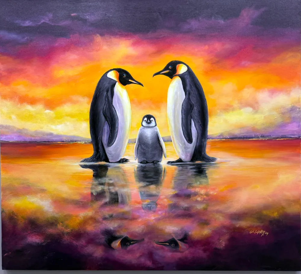 Resimlerinde 2001 yılından beri konu edindiği penguenler serisinde doğanın sertliğini, sevgi ve dayanışma kavramlarıyla dengelemeye çalıştığının altını çizen Candaş, sözlerini şöyle tamamladı: