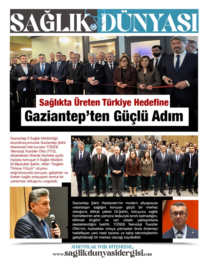 Gaziantep İl Sağlık Müdürlüğü koordinasyonunda Gaziantep Şehir Hastanesi’nde kurulan TÜSEB Teknoloji Transfer Ofisi (TTO), düzenlenen törenle hizmete açıldı. Açılışta konuşan İl Sağlık Müdürü Dr.Beytullah Şahin, ofisin “Sağlıklı Türkiye Yüzyılı” vizyonu doğrultusunda koruyan, geliştiren ve üreten sağlık anlayışının somut bir yansıması olduğunu vurguladı.