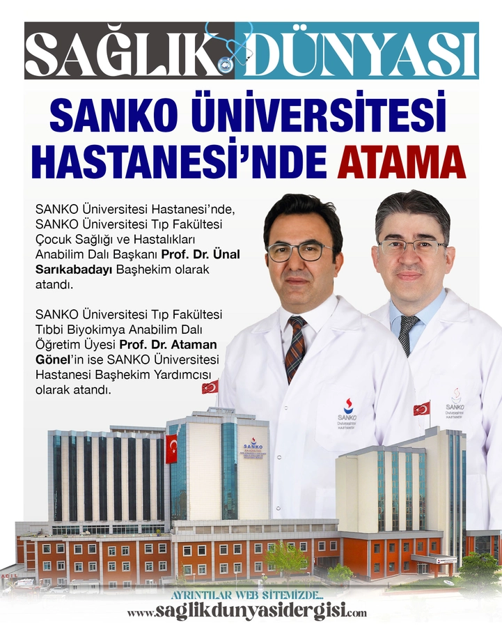 SANKO Üniversitesi Tıp Fakültesi Tıbbi Biyokimya Anabilim Dalı Öğretim Üyesi Prof. Dr. Ataman Gönel’in ise SANKO Üniversitesi Hastanesi Başhekim Yardımcısı olarak atandı.
