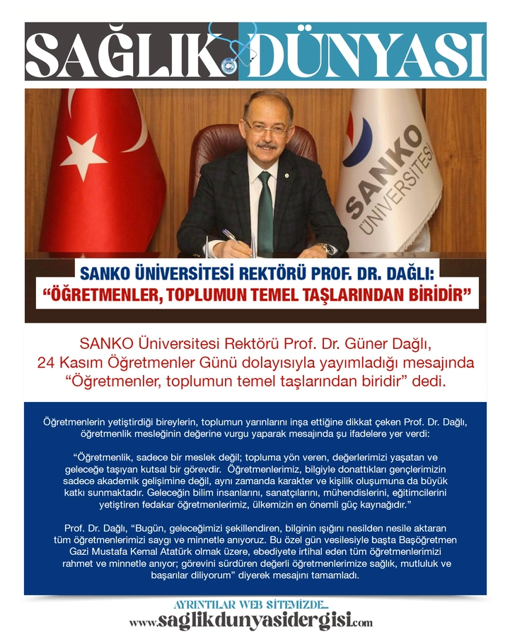 Prof. Dr. Dağlı, “Bugün, geleceğimizi şekillendiren, bilginin ışığını nesilden nesile aktaran tüm öğretmenlerimizi saygı ve minnetle anıyoruz. Bu özel gün vesilesiyle başta Başöğretmen Gazi Mustafa Kemal Atatürk olmak üzere, ebediyete irtihal eden tüm öğretmenlerimizi rahmet ve minnetle anıyor; görevini sürdüren değerli öğretmenlerimize sağlık, mutluluk ve başarılar diliyorum” diyerek mesajını tamamladı.