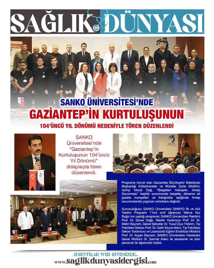 Sunuculuğunu SANKO Üniversitesi SHMYO İlk ve Acil Yardım Programı 1’inci sınıf öğrencisi Merve Nur Bağcı’nın yaptığı programa; SANKO Üniversitesi Rektörü Prof. Dr. Güner Dağlı, Rektör Yardımcısı Prof. Dr. M. Metin Bayram, Genel Sekreter Dr. Yusuf Ziya Yıldırım, Tıp Fakültesi Dekanı Prof. Dr. Salih Murat Akkın, Tıp Fakültesi Dekan Yardımcısı ve Lisansüstü Eğitim Enstitüsü Müdürü Prof. Dr. Ayşen Bayram, SANKO Üniversitesi Hastanesi Genel Müdürü Dr. Sermet Kileci ile akademik ve idari personel ile öğrenciler katıldı.