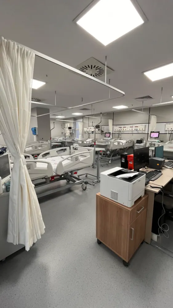 Hastanemiz Koroner Yoğun Bakım Ünitesi son teknoloji ve modern cihazlarla donatılmış olup her hasta için hasta başı EKG, kan basıncı, nabız, kanın oksijen düzeyi, solunum kaybı, vücut ısısı ölçümlerini devamlı olarak yapılmakta bu özellikler merkezi olarak aynı anda ana bankoda da izlenmektedir.