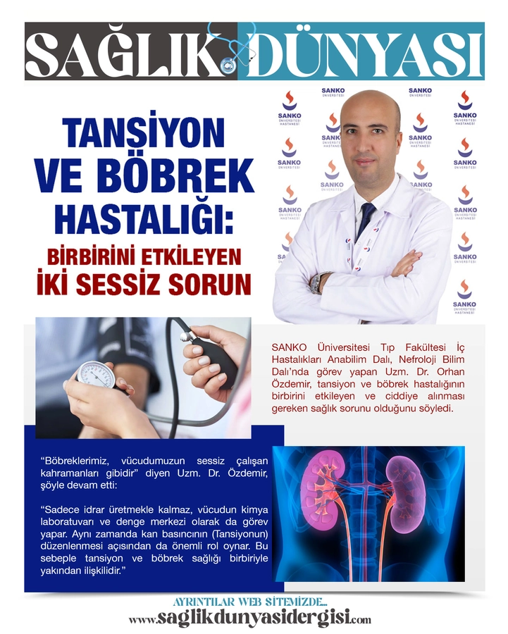 SANKO Üniversitesi Tıp Fakültesi İç Hastalıkları Anabilim Dalı, Nefroloji Bilim Dalı’nda görev yapan Uzm. Dr. Orhan Özdemir, tansiyon ve böbrek hastalığının birbirini etkileyen ve ciddiye alınması gereken sağlık sorunu olduğunu söyledi.
