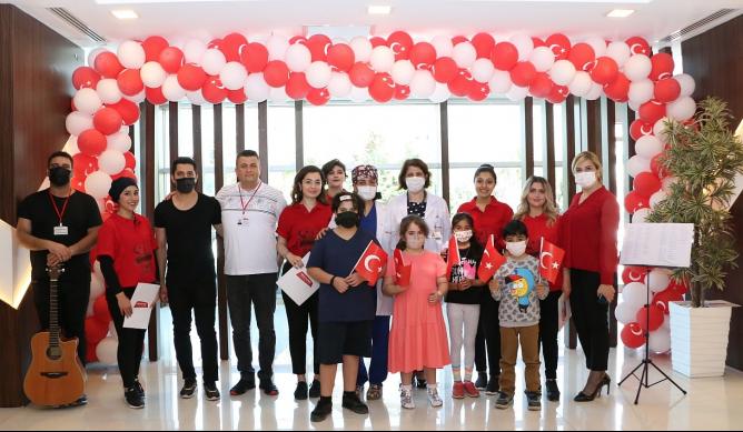 Onkoloji Ünitesi'nde tedavi gören hastaları da ziyaret eden Şifa Veren Sesler Korosu, üst düzey yönetim, hekimler ve misafirler oldukça ilgi gösterdi. Şarkılara eşlik edenler, cep telefonları ile şarkıları kaydederek hoş bir ambiyans oluşturdular. Ayrıca hastanedeki tüm gençlere ve çocuklara ay yıldızlı balon ve bayrak dağıtımı gerçekleştirildi.