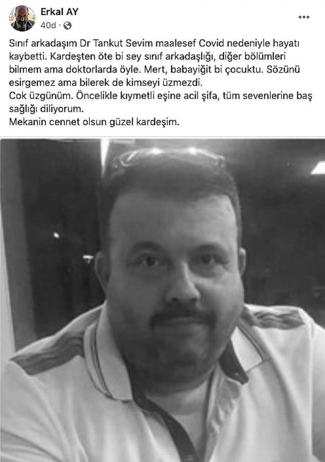 Aksaray 12 Nolu Aile Sağlığı Merkezinde görevli Aile Hekimi Dr. M. Tankut SEVİM, Covid nedeniyle hayatı kaybetti.