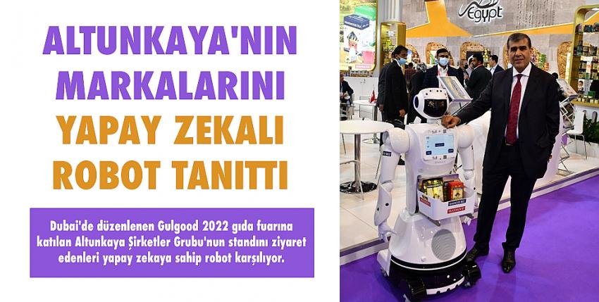 Dubai’de düzenlenen Gulgood 2022 gıda fuarına katılan Altunkaya Şirketler Grubu’nun standını ziyaret edenleri yapay zekaya sahip robot karşılıyor. Ziyaretçilere Altunkaya Şirketler Grubunun markalarının tanıtımını yapan robot, aynı zamanda ziyaretçilerin sorularını da yanıtlıyor.
