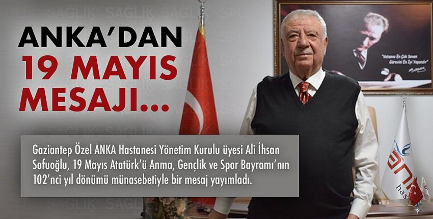 Gaziantep Özel ANKA Hastanesi Yönetim Kurulu üyesi Ali İhsan Sofuoğlu, 19 Mayıs Atatürk’ü Anma, Gençlik ve Spor Bayramı dolayısıyla mesaj yayımladı.