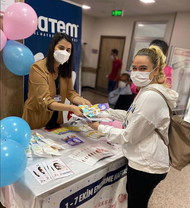 1-7 Ekim Emzirme Haftası münasebetiyle Özel Hatem Hastanesi lobby bölümünde stant açılarak hastalara emzirmenizin önemi anlatılarak bilgilendirme broşürleri dağıtıldı. Hastanede yeni doğum yapan annelere emzirme önlüğü ve emzirme rehberi takdim edildi.