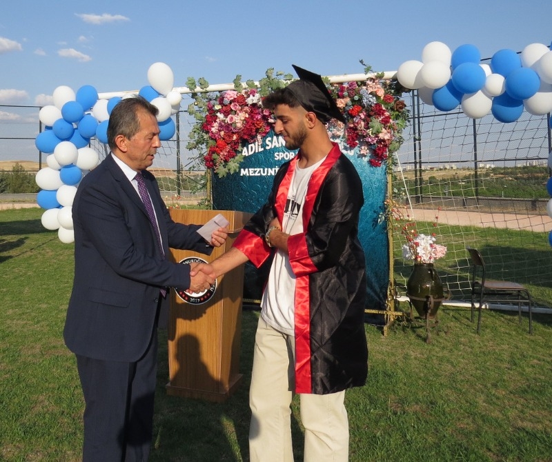 Konuşmalarından ardından mezun öğrencilere diplomaları verilirken, SANKO Holding Yönetim Kurulu Başkanı Adil Sani Konukoğlu adına, Sani Konukoğlu Vakfı Mütevelli Heyet Başkan Vekili Naci Boran tarafından bireysel sporlarda Türkiye birincisi ve ikincisi her sporcuya beşer bin TL, takım sporlarında Türkiye derecesi elde eden takımların sporcularına da ikişer bin TL’lik hediye çeki takdim edildi.
