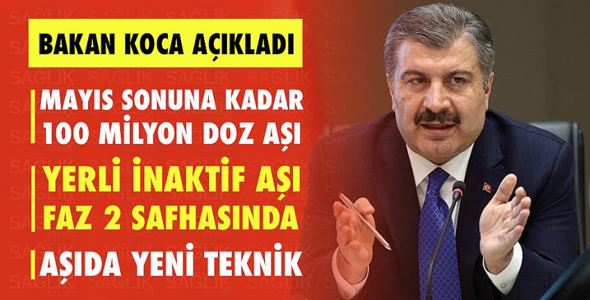 Aşı tedariki ve aşılama politikasına ilişkin bilgiler veren Koca, “Öncelikle, Türkiye Covid- 19 Aşı Tablosu hakkında bazı verileri paylaşmak istiyorum. Sayılara bilhassa dikkat edin. Şu sayılar büyük önem arz ediyor: Türkiye’de şu ana kadar 14 milyon dozdan fazla aşı uygulandı. Yurt dışından getirerek kullanıma aldığımız aşı, toplamda 18 milyon dozun üzerinde. Ayrıca bugün itibariyle, 10 milyon doza tekabül eden, dolumu Türkiye’de yapılacak aşı elimize ulaşmış durumda. Mayıs sonuna kadarsa toplam 100 milyon dozun Türkiye’ye ulaşmasını bekliyoruz. Anlaşma bu şekilde yapılmıştır. Bunlar, her birinize güven telkin edecek sayılardır. Bunlar, neyi geride bıraktığınızı ve sizi nasıl bir hayatın beklediğini gösteren sayılardır” diye konuştu.