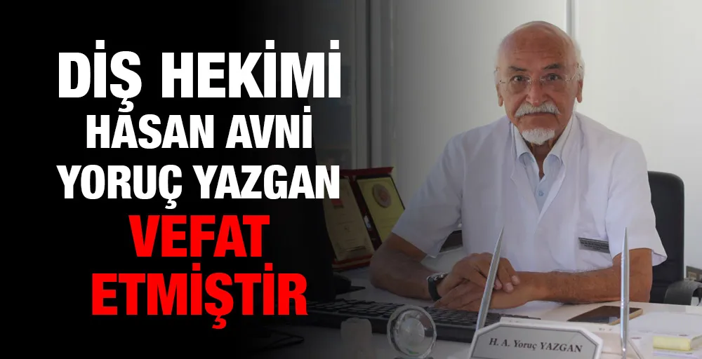 Diş Hekimi Hasan Avni Yoruç Yazgan vefat etmiştir. Cenazesi bugün Öğle namazına muteakip Bahattin Nakipoglu camiinden kaldırılacaktır.
