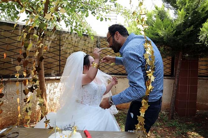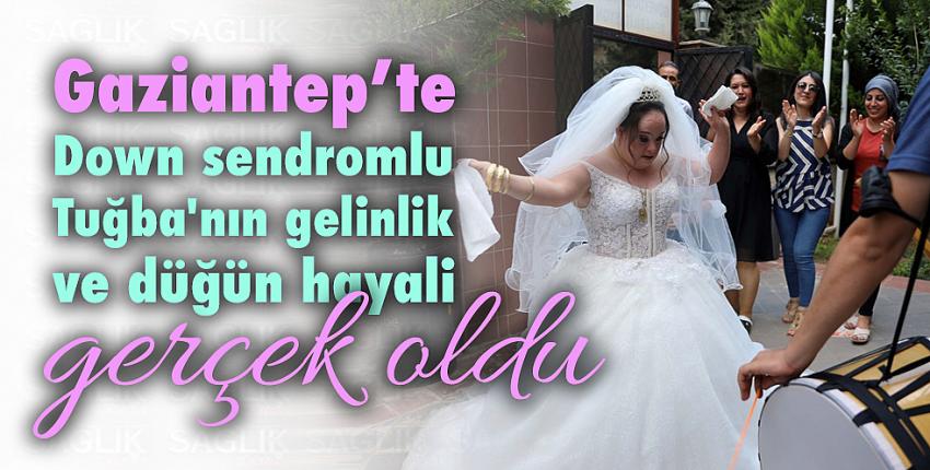 Gaziantep’te down sendromlu Tuğba Kınacı’nın (28), gelinlik giyip evlenme hayali, rehabilitasyon merkezindeki öğretmenleri tarafından gerçekleştirildi. Gelinlik giyip, kuaförde saç ve makyajı yaptırılarak fotoğraf çektiren Tuğba Kınacı, rehabilitasyon merkezinde gerçekleştirilen sembolik düğünde davul zurna eşliğinde halay çekip eğlendi.