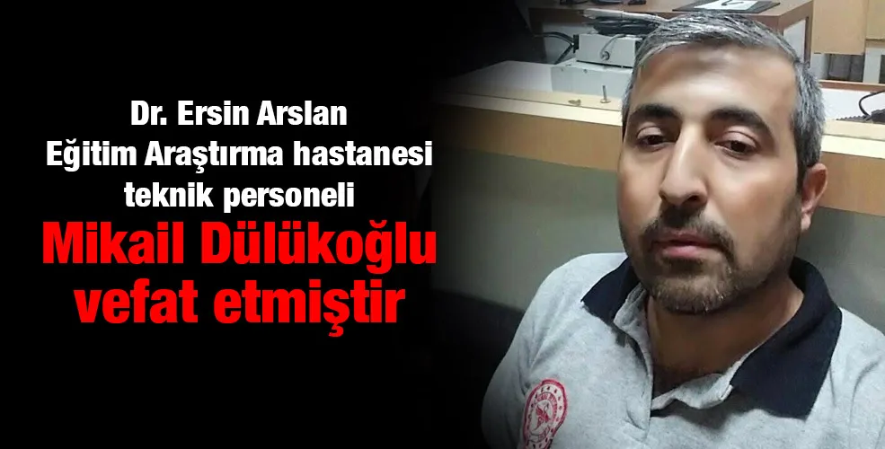 Hastanemizde Teknik personeli olarak görev yapan Mikail Dülüklü oğlu haklı rahmetine kavuşmuştur. Sevenlerinin, ailesinin ve sağlık çalışanlarımızın başı sağolsun. Merhume yüce Allah'tan rahmet diliyorum.Dr.Ersin Arslan Eğitim ve Araştırma Hastanesi'nde yapılan töreni'nde sonra ebiyete uğurlandı.