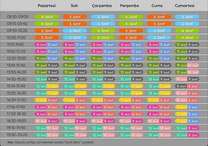 CANLI DERSLERİN GÜN VE SAATLERİ