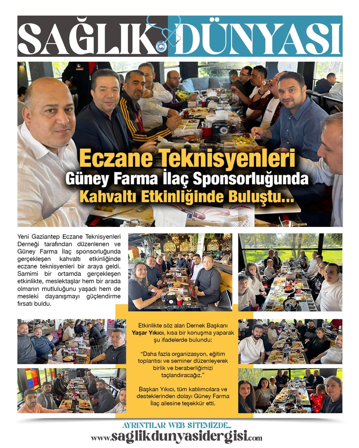 Yeni Gaziantep Eczane Teknisyenleri Derneği tarafından düzenlenen ve Güney Farma İlaç sponsorluğunda gerçekleşen kahvaltı etkinliğinde eczane teknisyenleri bir araya geldi. Samimi bir ortamda gerçekleşen etkinlikte, meslektaşlar hem bir arada olmanın mutluluğunu yaşadı hem de mesleki dayanışmayı güçlendirme fırsatı buldu.