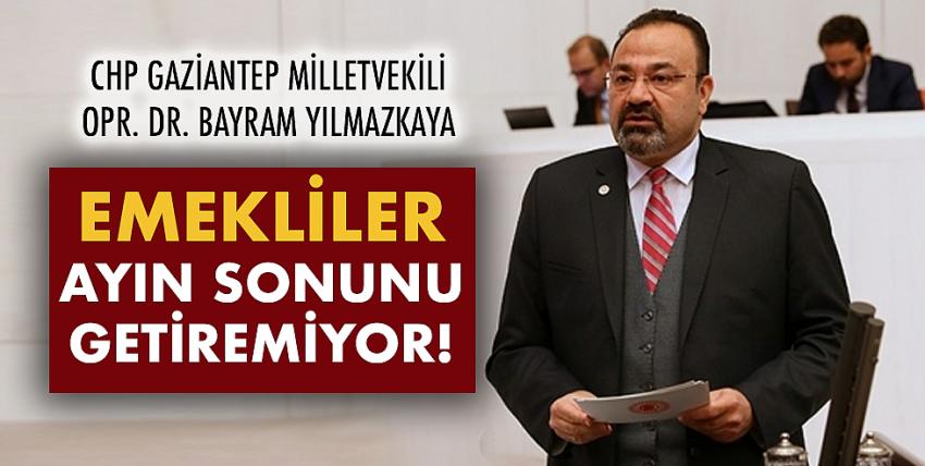 CHP Gaziantep Milletvekili Opr. Dr. Bayram Yılmazkaya, Emeklilerin insanca ve onurlu bir şekilde yaşayabilmeleri için en düşük emekli maaşının asgari ücret düzeyine getirilmesi gerektiğini vurguladı.