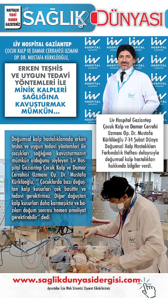Liv Hospital Gaziantep Çocuk Kalp ve Damar Cerrahi Uzmanı Op. Dr. Mustafa Kürklüoğlu 7-14 Şubat Dünya Doğumsal Kalp Hastalıkları Farkındalık Haftası dolayısıyla doğumsal kalp hastalıkları hakkında bilgiler verdi.