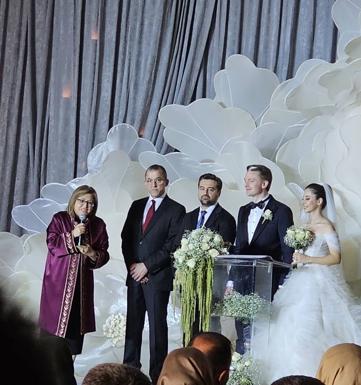 İçişleri Bakanı Ali Yerlikaya, Valimiz Kemal Çeber, Kilis Valisi Tahir Şahin, Gaziantep Milletvekili Mesut Bozatlı, Büyükşehir Belediye Başkanı Fatma Şahin ve protokol üyeleri, Donald Evans Ailesi ile önceki dönem Şehitkamil Belediye Başkanı Rıdvan Fadıloğlunun evlatları Beyza ile Benjamin’in nikah merasimine katıldı. Yeni evli çifte .sağlık dünyası dergisi olarak ömür boyu mutluluklar diliyoruz.