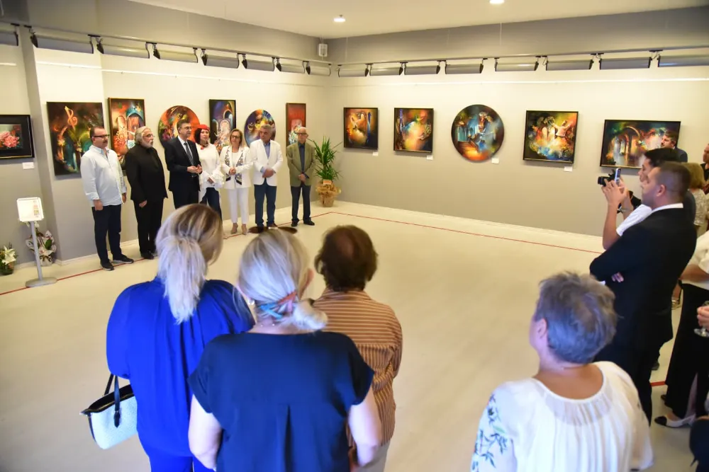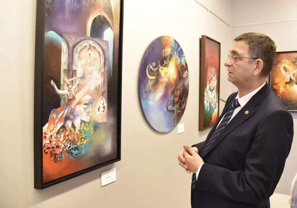 Fatoş Tatar Eker ise sergilediği eserlerinde tasavvufun soyut ve modern sanatla buluştuğu, kendi ruhundan yansıyan renklerin tuvalde birer hikâyeye dönüştüğünü söyledi.
