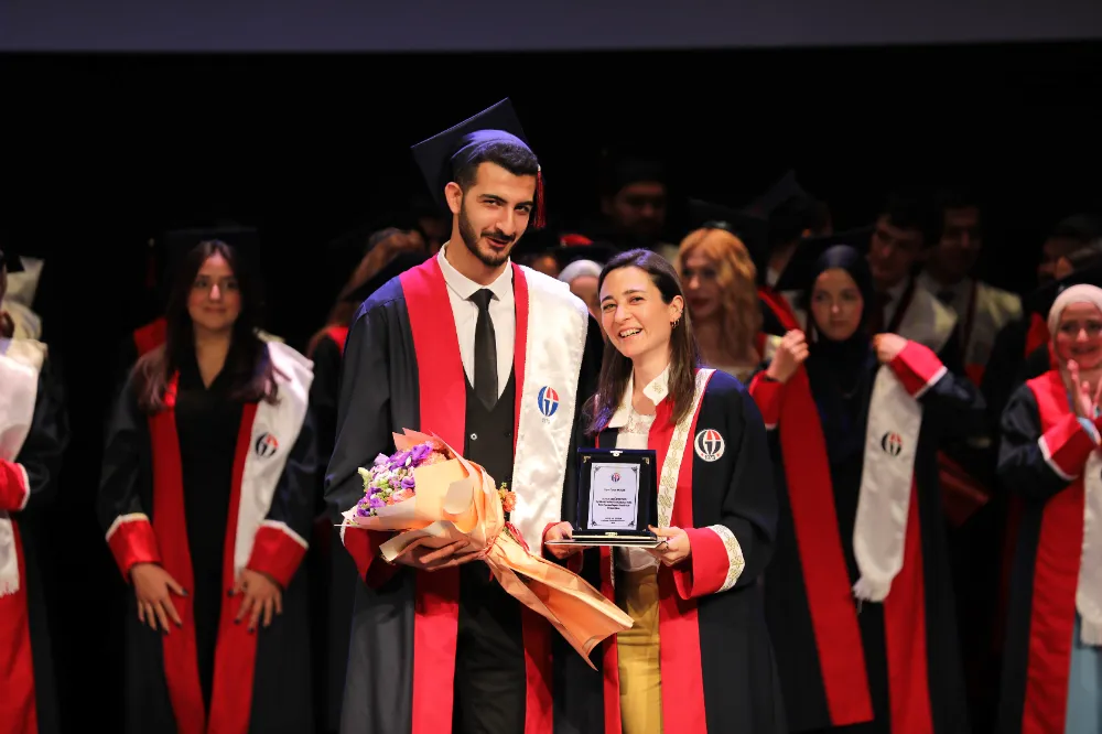 Mezun öğrenciler adına konuşan dönem birincisi ise Dt. Hamid Reza Maleki ise “Gaziantep Üniversitesi'nde geçirdiğimiz zorlu beş yılın sonunda, dönem birincisi olarak bu kürsüde bulunmak, hayatımın en gurur verici anlarından biri. Şu an burada olan herkese, gelecekteki tüm çabalarında başarılar diliyorum. Hepimiz için parlak ve umut dolu bir gelecek diliyorum.” dedi.