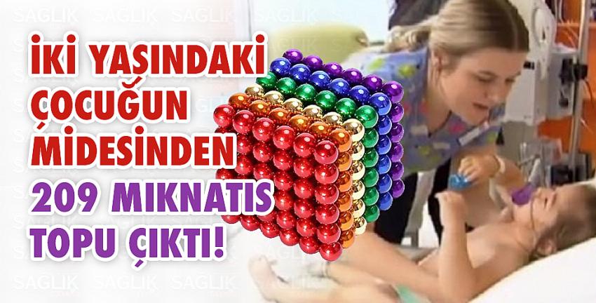 Yapılan ameliyatta çocuğun bağırsaklarından 209 adet mıknatıs topu çıkarıldı.Ameliyatın 2 saat sürdüğünü ifade eden doktorlar, çıkarılan mıknatıs toplardan bazılarında mide zarını delebilecek keskin kenarlar oluştuğu ifade edildi. İki yaşındaki bebeğin mıknatıs topunu 2 ay önce yuttuğu belirtilirken, sağlık durumunun iyi olduğu belirtildi.(milliyet)