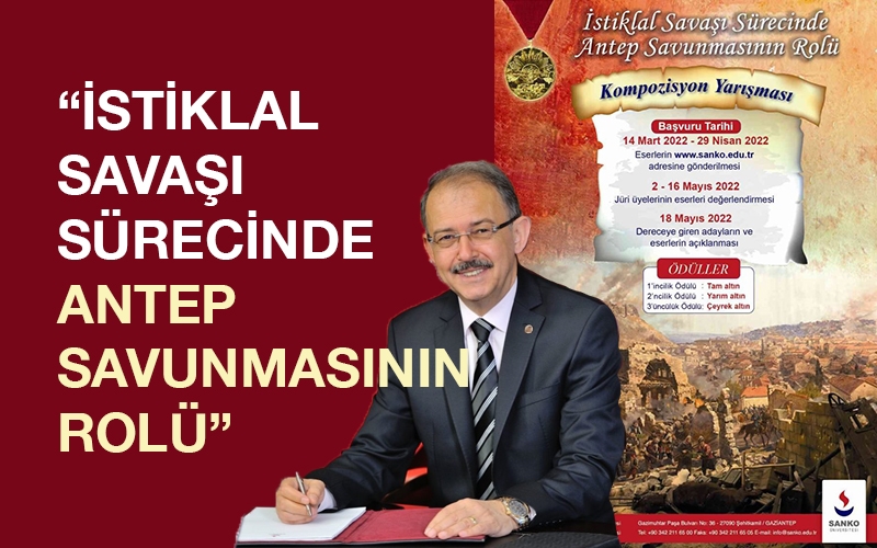 SANKO Üniversitesi tarafından, Gaziantep’te Millî Eğitim Bakanlığına bağlı resmi ve özel ortaöğretim okulları 12’nci sınıf öğrencilerine yönelik “İstiklal Savaşı Sürecinde Antep Savunmasının Rolü” konulu kompozisyon yarışması düzenlendi.