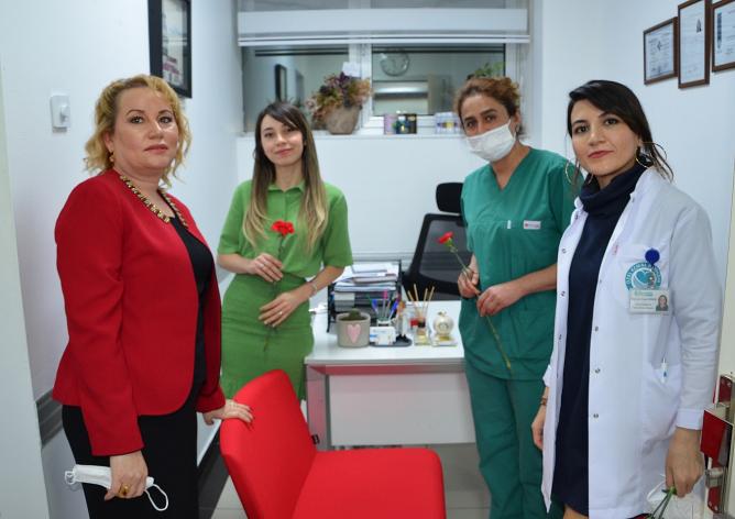 8 Mart Dünya Emekçi Kadınlar Günü”nü başta kadın hasta, hasta yakınları ve çalışanlara günün anısına Özel Kemal Bayındır Hastanesi Genel Koordinatörü Teslime Bayındır eşliğinde Başhekim Dr. Pınar Güneş, Başhemşire Reyhan Alagöz önderliğinde 8 Mart için özel hazırlanan hediye takdimleriyle ile kutlandı.