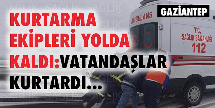 Gaziantep’te vakaya giden 112 ve itfaiye ekipleri yoğun kar yağışı ve buzlanma nedeniyle yolda kaldı. Zorlu kış koşullarına rağmen yoğun çaba sarf eden ekiplerin yardımına ise vatandaşlar yetişti.