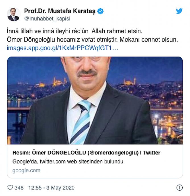 Döngeloğlu’nun vefatını Mustafa Karataş hoca hesabından “İnnâ lillah ve innâ ileyhi râciûn Allah rahmet etsin. Ömer Döngeloğlu hocamız vefat etmiştir. Mekanı cennet olsun” diyerek duyurdu.
